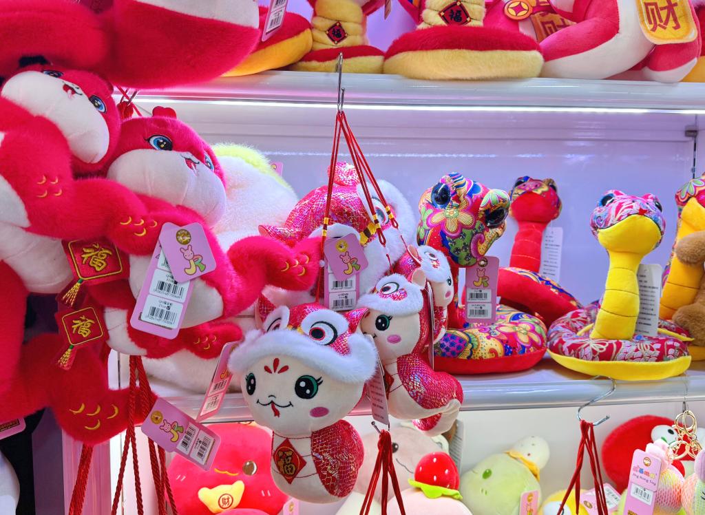 農(nóng)歷乙巳蛇年將至,結(jié)合生肖主題,陸慶榮與團隊早在去年七、八月就敲定了三十多個品種的款式設(shè)計,而十一月、十二月便是出貨銷售的高峰期,每天能賣出約兩萬只毛絨玩具。其中,“福寶蛇”和布藝蛇玩具是“人氣王”。