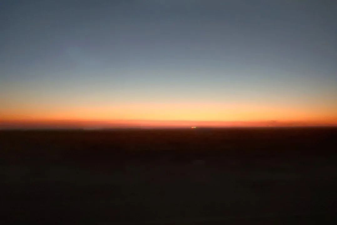 在前往家鄉(xiāng)的列車(chē)上經(jīng)過(guò)哈密時(shí),我坐在窗邊正吃著泡面,抬頭便看到這絕美月色,我用相機(jī)將它定格,而在車(chē)廂的另一邊是落日,兩種景色交匯在此,也應(yīng)了窗貼上這句“回家的路,就是最美的風(fēng)景”。