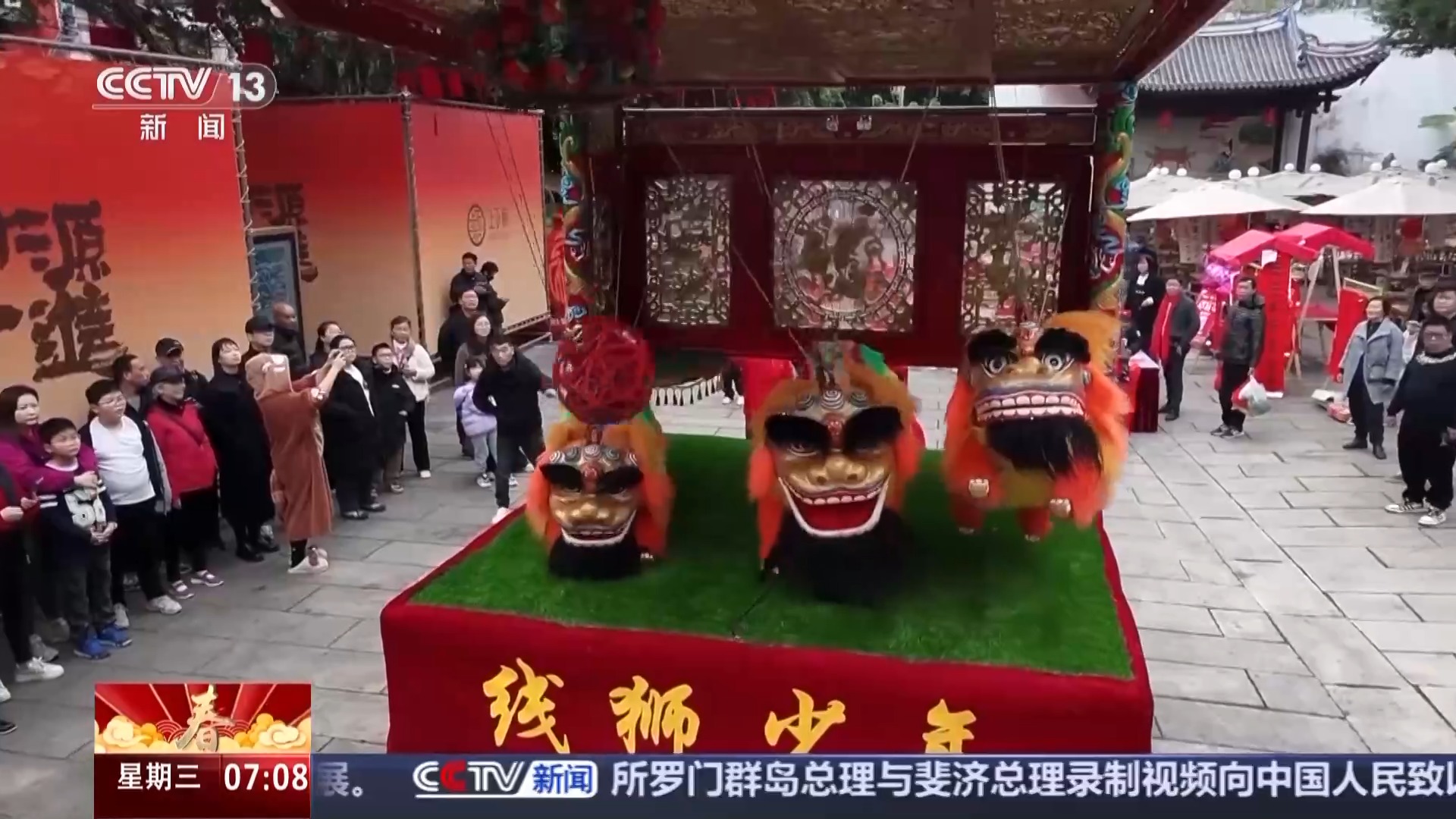 福建寧德霍童鎮(zhèn)興賢村少年線(xiàn)獅隊(duì)隊(duì)長(zhǎng) 陳吉宏:線(xiàn)獅,是用繩線(xiàn)去提控獅子的一種表演形態(tài)。我們的獅子表演形態(tài)就是母親帶著孩子在共同追逐球,實(shí)際上是一種表現(xiàn)母愛(ài)的環(huán)節(jié),那我們中國(guó)的團(tuán)圓,就是大家聚在一起過(guò)春節(jié),就是家家戶(hù)戶(hù),團(tuán)圓圓滿(mǎn)。