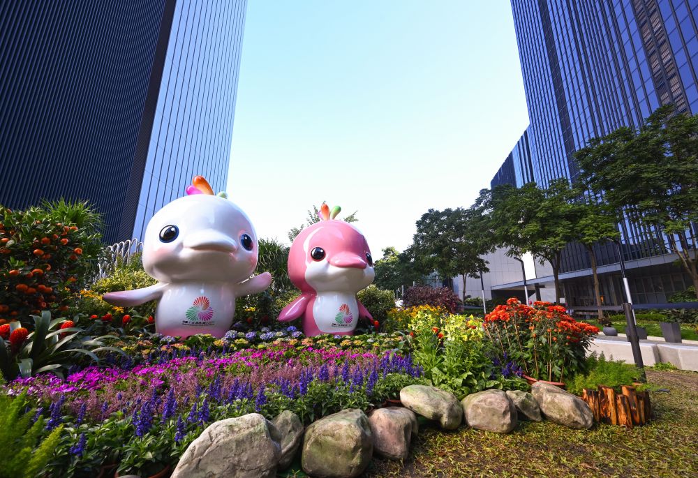 在金鐘,2米多高的第十五屆全國(guó)運(yùn)動(dòng)會(huì)吉祥物“喜洋洋”“樂(lè)融融”從除夕開(kāi)始現(xiàn)身添馬公園,與大家共賀新春,喜迎全運(yùn)。