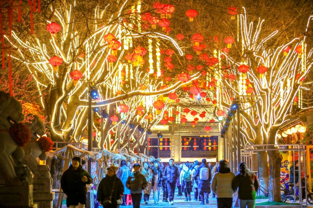 慶年食肆街、非遺展示街、嗨玩街、御河國潮街……“春節(jié)期間,古鎮(zhèn)設(shè)置了4條主題大街,引入大量互動體驗和50余場演出,讓游客沉浸式體驗傳統(tǒng)年味和現(xiàn)代樂趣?!碧旖颦h(huán)城城市基礎(chǔ)設(shè)施投資有限公司經(jīng)理助理王峰說。