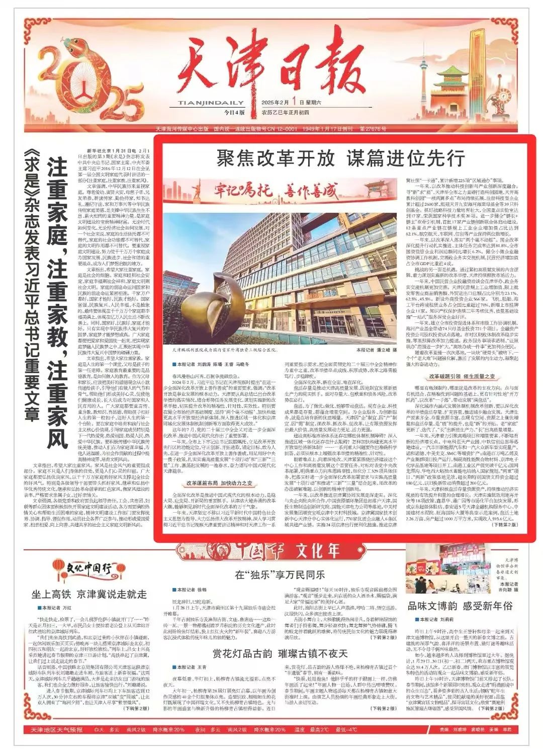 2024年2月,習(xí)近平總書記在天津視察時(shí)提出“在進(jìn)一步全面深化改革開放上善作善成”的重要要求,強(qiáng)調(diào):“改革開放是事業(yè)發(fā)展的根本動(dòng)力。天津要認(rèn)真總結(jié)已出臺(tái)改革舉措的落實(shí)情況,結(jié)合形勢(shì)任務(wù)發(fā)展變化,謀劃實(shí)施新的改革舉措,切實(shí)提升改革的精準(zhǔn)性、針對(duì)性、實(shí)效性。特別要在健全市場經(jīng)濟(jì)基礎(chǔ)制度、堅(jiān)持‘兩個(gè)毫不動(dòng)搖’、加快構(gòu)建更高水平開放型經(jīng)濟(jì)新體制、深入推進(jìn)區(qū)域一體化和京津同城化發(fā)展體制機(jī)制創(chuàng)新等方面取得更大成效?!?/p>