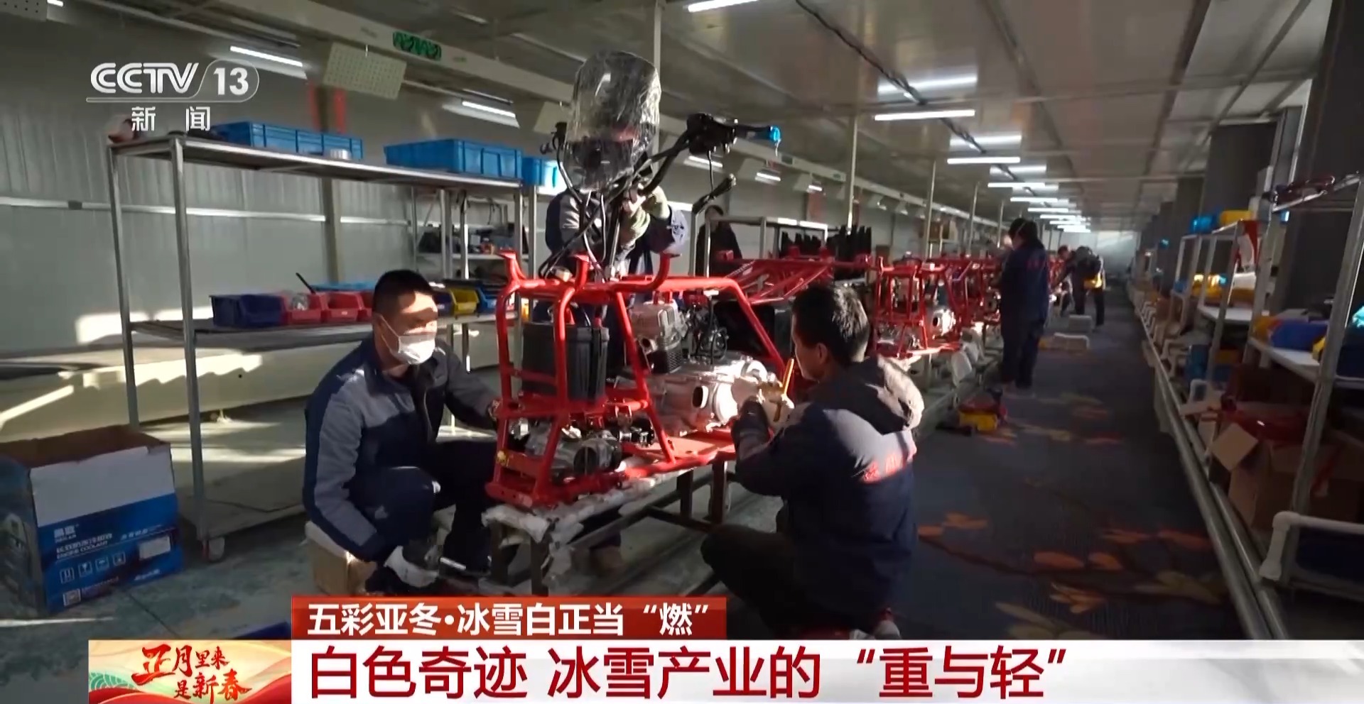 這幾年,騎手們真切地感受到,冰天雪地也是金山銀山。春節(jié)前夕,在這個總面積19000平方米的廠房里,工人們正在流水線上忙著組裝雪地摩托車的零部件,趕著訂單交付。