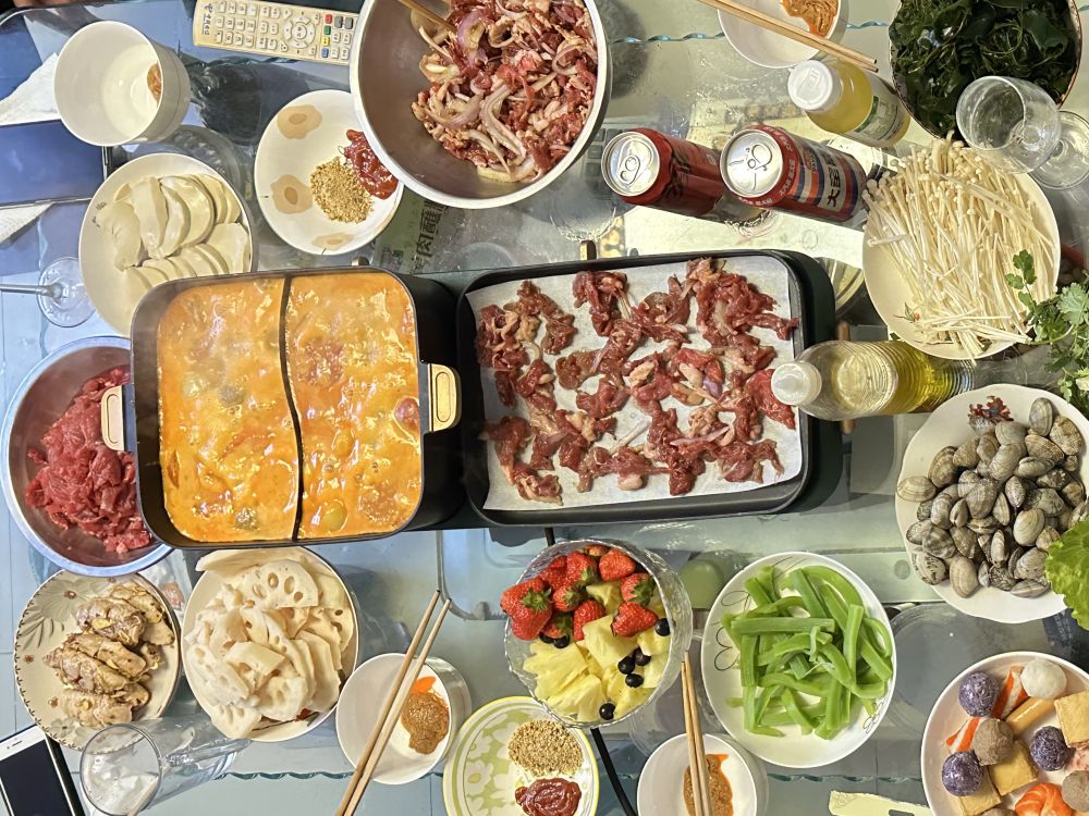 河南的小鄭向爸媽提議換個(gè)方式吃年夜飯,一家四口用“一體鍋”實(shí)現(xiàn)了“火鍋和烤肉自由”;北京市民毛毛(化名)家里的年夜飯墊上了暖菜板,她說“不用擔(dān)心吃到一半菜涼了”,飯后她用果蔬清洗機(jī)為家里人洗了水果……