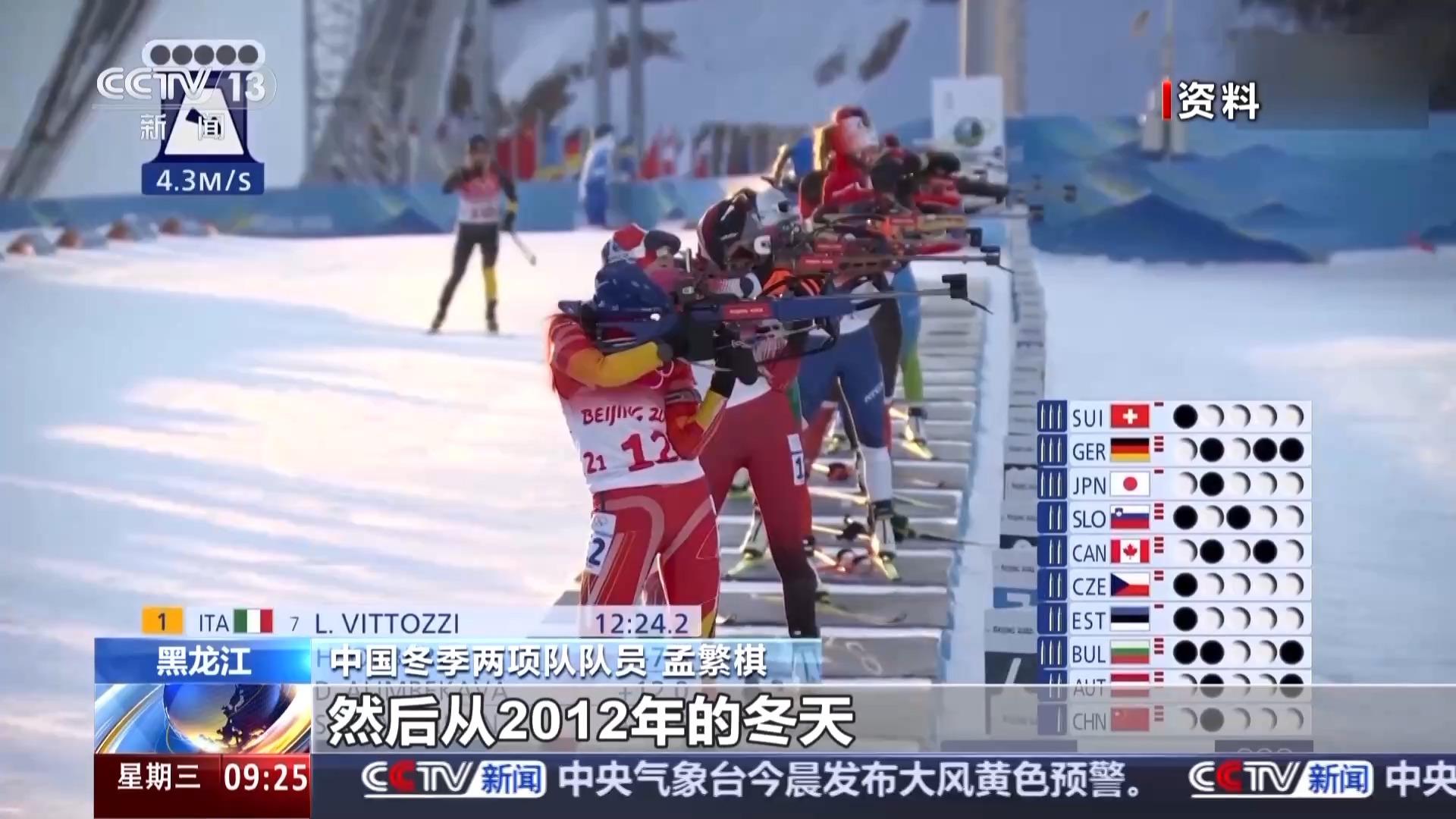 中國冬季兩項隊隊員 孟繁棋:原來我練的是越野滑雪,然后從2012年的冬天直接轉(zhuǎn)到了冬季兩項,我拿了我的第一個全國冠軍,讓我特別喜歡上了這個項目,給我自己自信了,認為我可以繼續(xù)練這個項目。