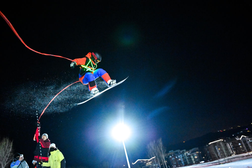 滑雪愛好者在進行滑雪趣味跳高賽 顏麟蘊 攝