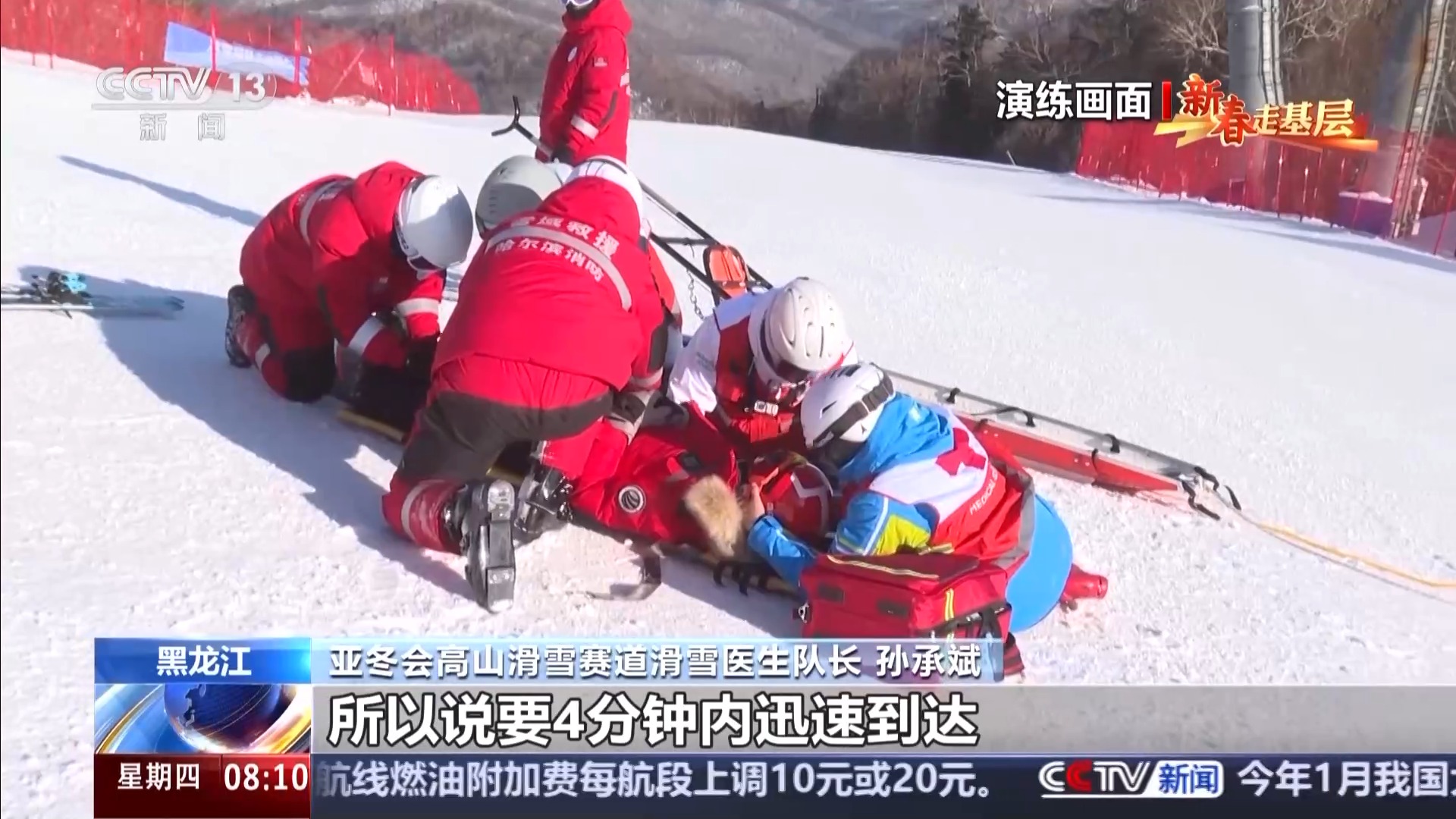 亞冬會高山滑雪賽道滑雪醫(yī)生隊長 孫承斌:剛才模擬的是頭部外傷、頸部外傷、腦震蕩這么一個傷情。這是高山滑雪里面最常出現(xiàn)的傷情。如果有嚴重損傷,考慮到病人的愈后和腦死亡時間,所以說要4分鐘內(nèi)迅速到達,盡快處理,然后進行轉(zhuǎn)運,到山下的運動員醫(yī)療站或者是定點醫(yī)院進行救治。