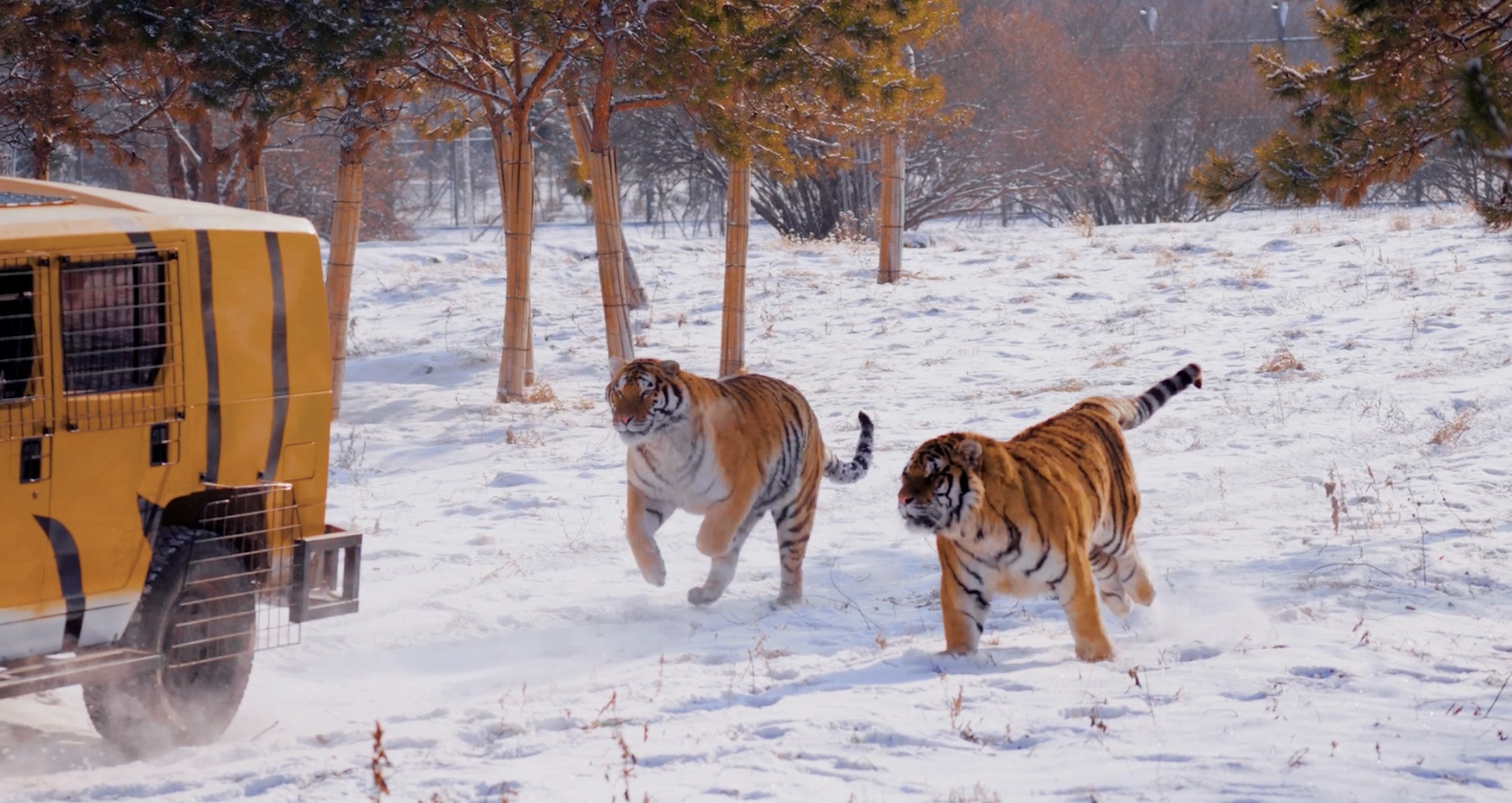 飼養(yǎng)員 楊忠亮:它們兩個現(xiàn)在是在一歲多快到一歲半了,體重也能達到150多斤以上了。我們給它提供了一個比較大的活動場地,讓它們能活動得比較開闊,能更好的與游客去見面。這個年齡段也是非常愛打愛斗愛鬧的年齡。游客隨時來到我們東北虎林園,也會隨時的看到它們和游客很好的一個互動。