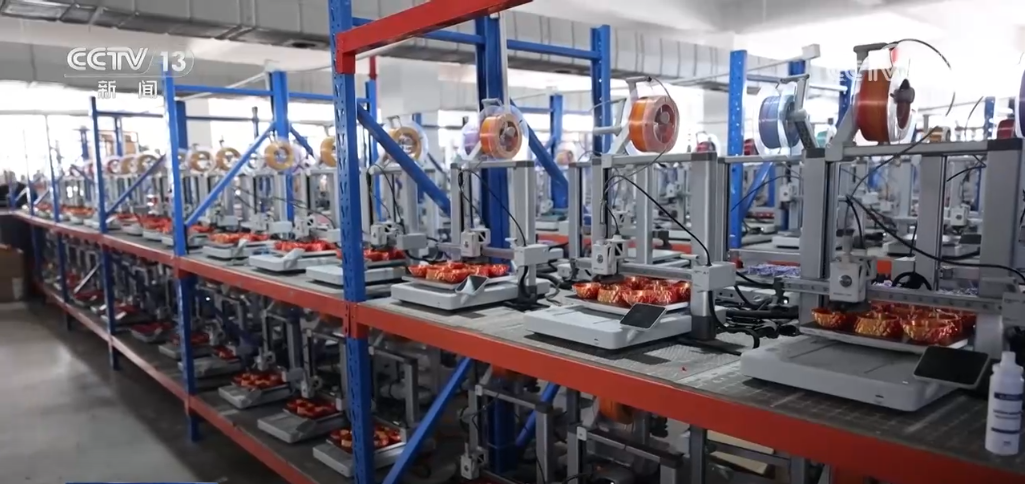 工廠負責人告訴記者,他的產品幾乎一直在海外電商平臺排名第一,秘訣之一就是打印的原材料。為了研發(fā)這個三色的材料,團隊花了近四個月的時間。但也讓產品獲得了獨特優(yōu)勢。在打印車間的樓上就是占地面積5200平米的耗材車間,近50臺機器同時開動,全力生產。