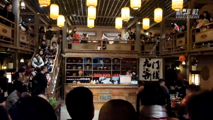 眾多游客和群眾齊聚縣城老街,在喜慶祥和的熱鬧氛圍中共度新春。