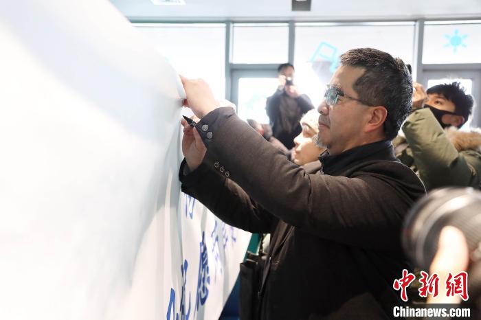 2月11日,北京延慶小海坨山,兩岸學(xué)子為2025年哈爾濱亞洲冬季運(yùn)動(dòng)會(huì)遙送祝福。 中新社記者 李雪峰攝