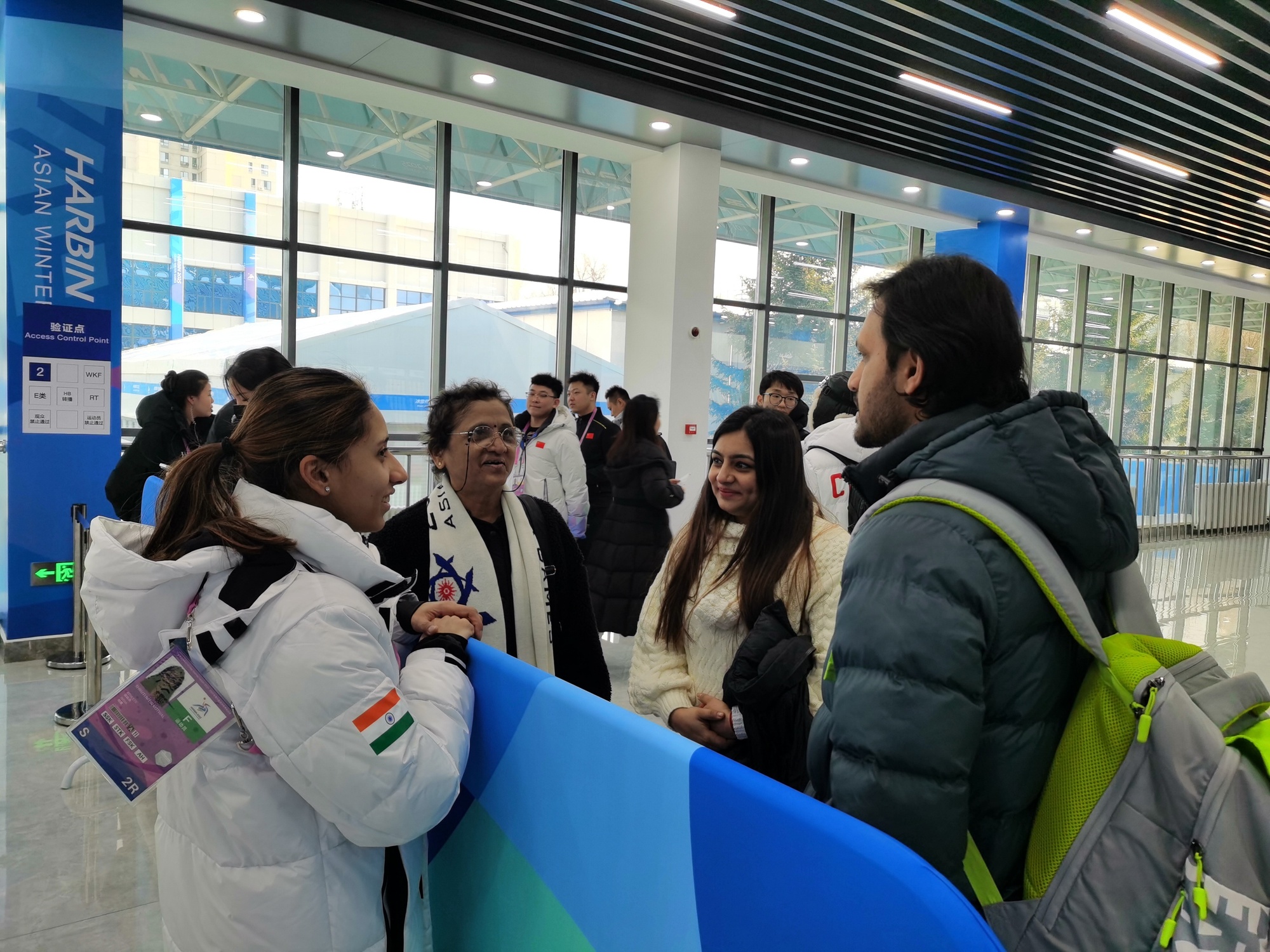 印度速度滑冰選手詩魯?shù)俚募胰耍策x擇這次亞冬會的機會,來到哈爾濱與她團聚。詩魯?shù)俚慕憬惆涂说俑嬖V記者,印度的滑冰訓練條件有限,為了追逐夢想,妹妹常年在美國訓練,一家人難得有機會聚在一起。