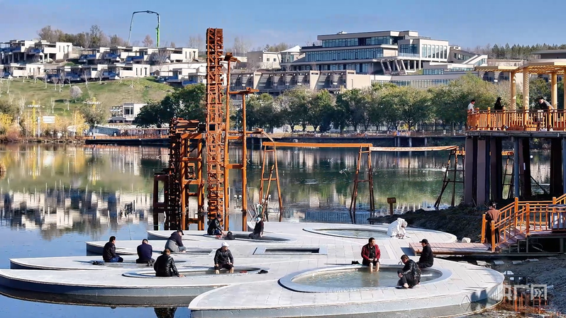 游客在溫泉縣戶外蓮花泡池體驗泡溫泉 (央廣網(wǎng)發(fā) 趙星 攝)