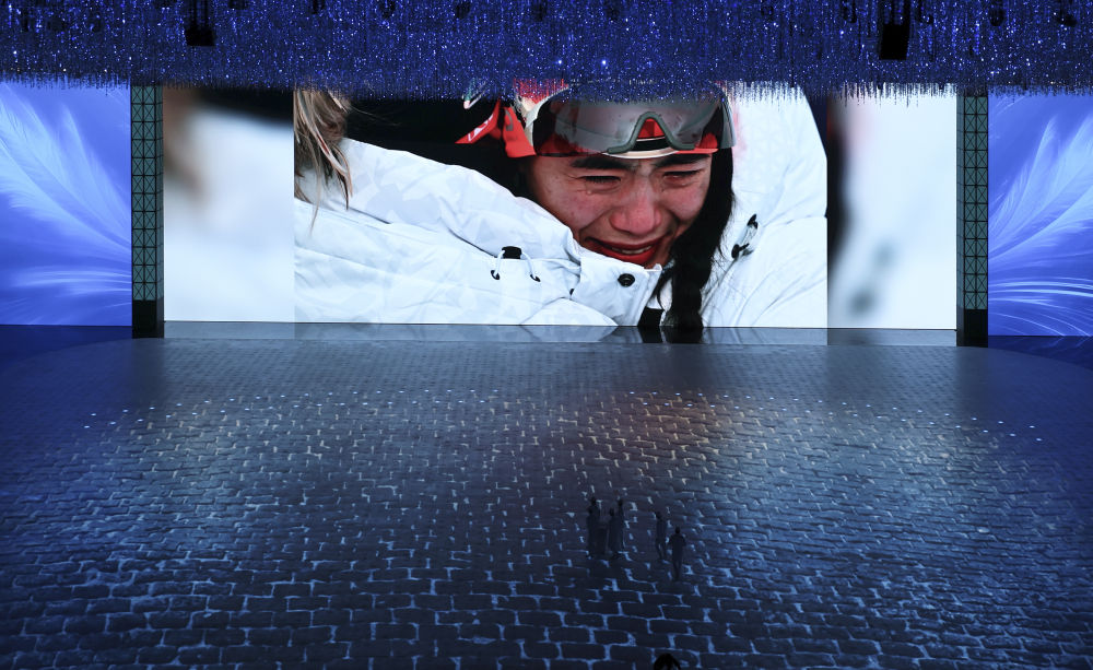 閉幕式現(xiàn)場(chǎng)的大屏幕上