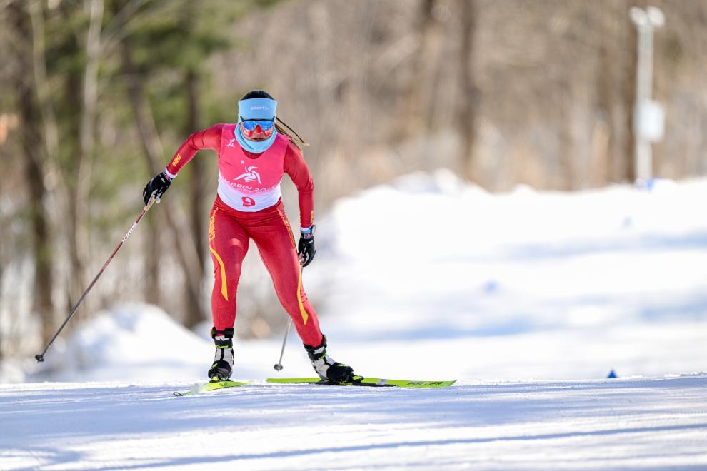 2月9日,中國選手巴亞尼·加林在第九屆亞冬會(huì)越野滑雪女子5公里(自由技術(shù))比賽中。新華社記者 連振 攝