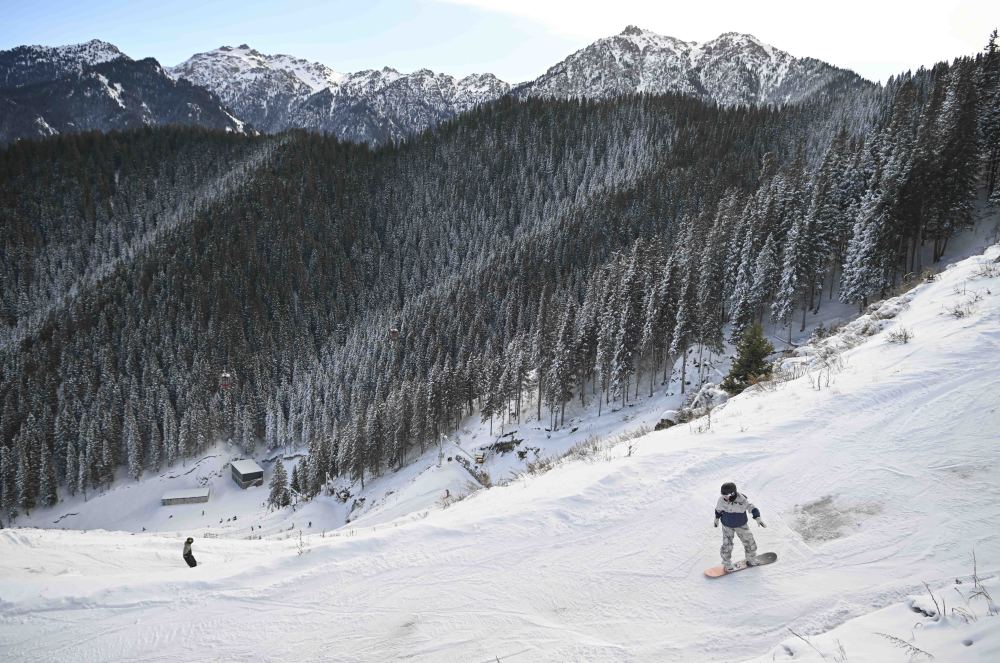 2024年11月24日,滑雪愛好者在新疆絲綢之路山地度假區(qū)滑雪。新華社記者 胡虎虎 攝