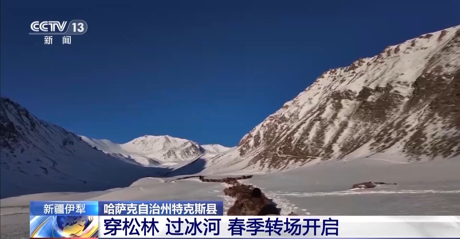 這幾天,新疆伊犁哈薩克自治州特克斯縣11.7萬(wàn)只牲畜開啟春季轉(zhuǎn)場(chǎng),當(dāng)?shù)啬撩駛冓s著牲畜跨越海拔3800多米的喬拉克阿蘇達(dá)坂,從伊犁河谷最大的冬牧場(chǎng)——包扎得爾冬牧場(chǎng)趕往春牧場(chǎng)或者定居點(diǎn)。一路上穿松林、過(guò)冰河,路途艱辛。