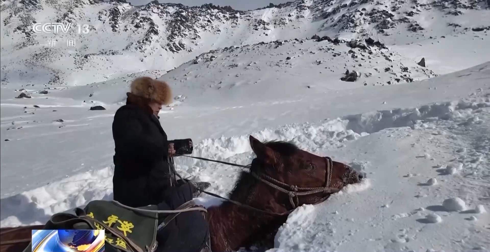 山上有很厚的積雪。即使有之前轉(zhuǎn)場(chǎng)的畜群踩出的路,也會(huì)很快被風(fēng)吹雪覆蓋。剛上達(dá)坂,干部阿曼吐爾騎的馬一不留神就摔在雪窩里,好在積雪厚,人和馬都沒(méi)有大礙。
