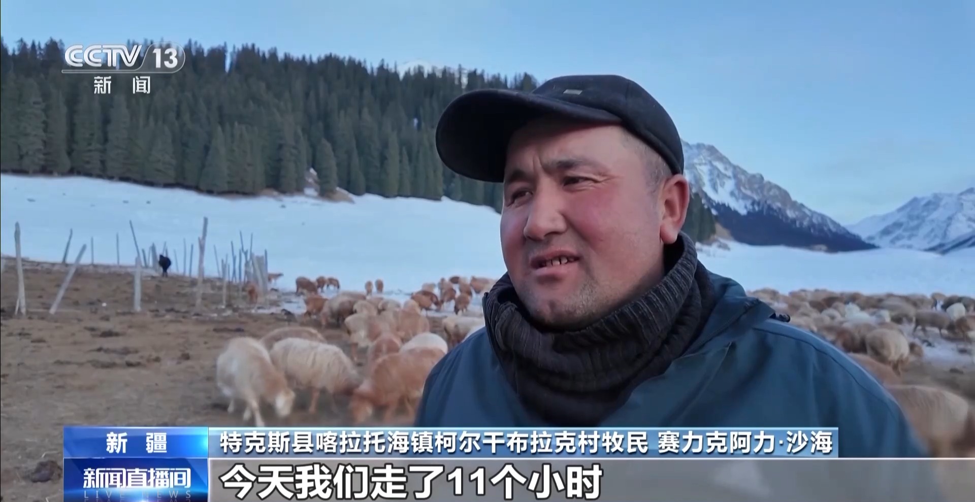 特克斯縣喀拉托海鎮(zhèn)柯爾干布拉克村牧民 賽力克阿力·沙海:今天我們走了11個(gè)小時(shí),我們明天早晨繼續(xù)出發(fā)。