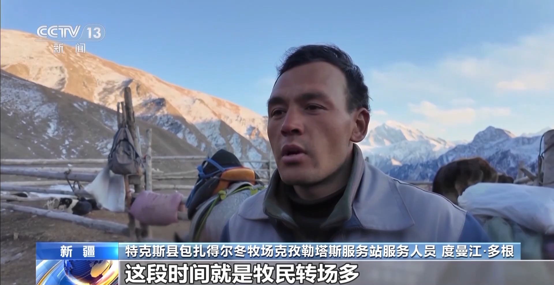 特克斯縣包扎得爾冬牧場(chǎng)克孜勒塔斯服務(wù)站服務(wù)人員 度曼江·多根:這段時(shí)間牧民轉(zhuǎn)場(chǎng)多,我們這里每天最少來(lái)三四個(gè)人,今天來(lái)了五家人,很熱鬧。