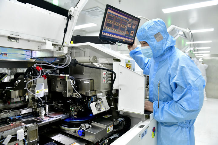 在江蘇昆山丘鈦微電子科技股份有限公司,無塵車間里一條條機(jī)械手臂穩(wěn)步移動(dòng),將指甲蓋大小的攝像頭拿起、檢測(cè)、再放回托盤。