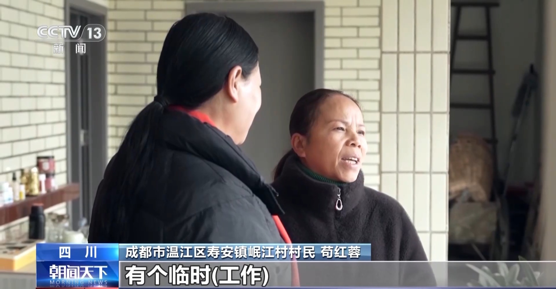 成都市溫江區(qū)壽安鎮(zhèn)岷江村村民 茍紅蓉:讓我們這些在家里照顧老人的,有個(gè)臨時(shí)工作,有點(diǎn)兒收入。每天在家里,除了地頭和照顧老人,好多時(shí)候也沒有啥事了。