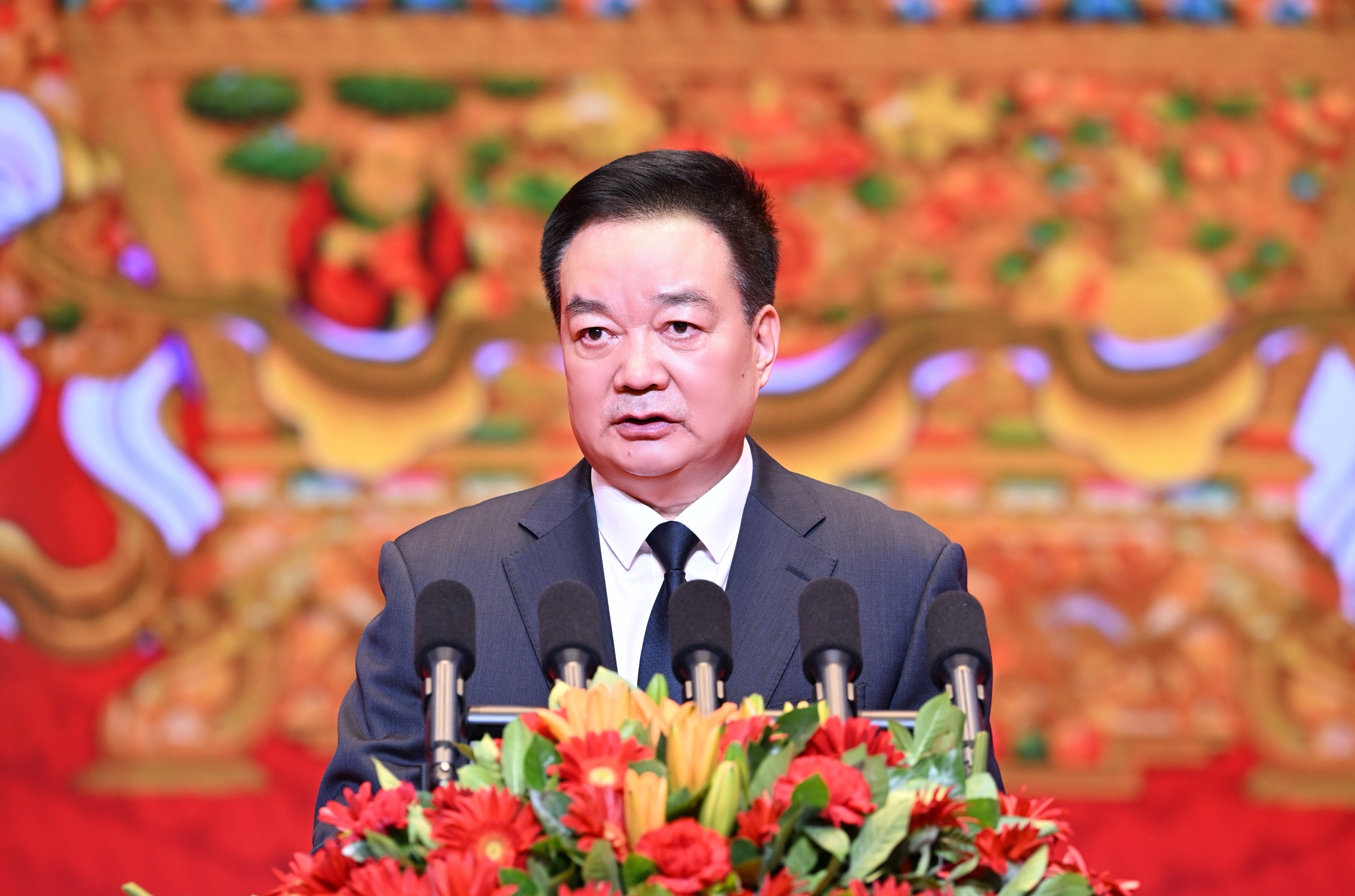 近日,西藏自治區(qū)各族各界喜迎2025年藏歷木蛇新年茶話會(huì)在拉薩舉行。自治區(qū)黨委書記、西藏軍區(qū)黨委第一書記王君正出席并致辭。記者 旦增西旦 攝
