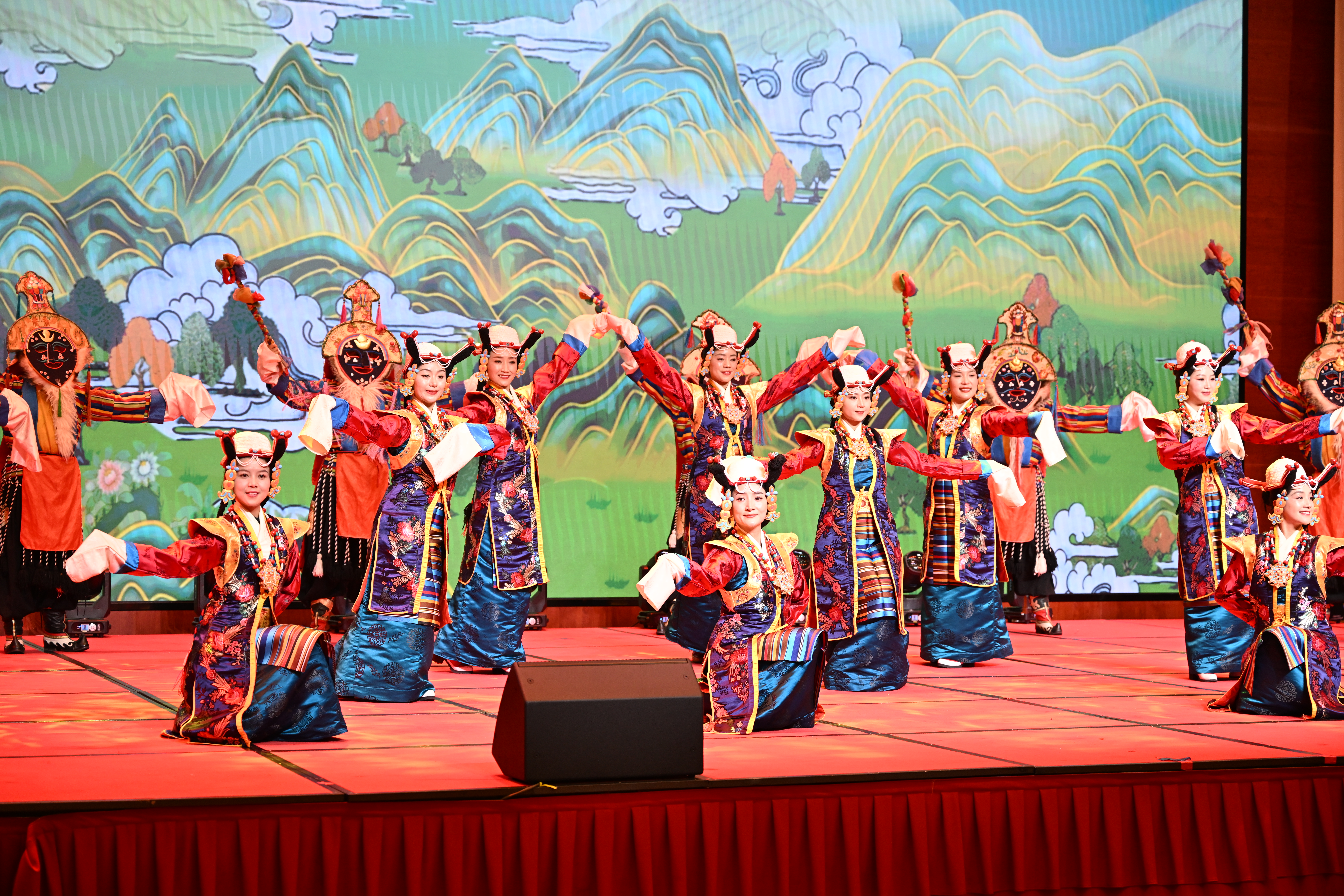 近日,西藏自治區(qū)各族各界喜迎2025年藏歷木蛇新年茶話會(huì)在拉薩舉行。這是文藝工作者正在表演節(jié)目。記者 旦增西旦 攝