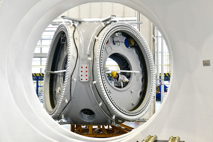 2025年2月22日,在三一重能(日照)風(fēng)電設(shè)備制造有限公司,工作人員在風(fēng)電設(shè)備生產(chǎn)車(chē)間忙碌。新華社記者 郭緒雷 攝