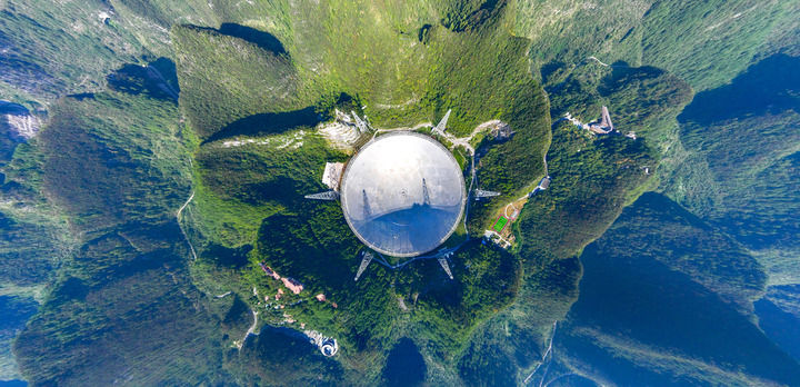 2024年9月25日拍攝的位于貴州省平塘縣的“中國天眼”(無人機(jī)全景照片,維護(hù)保養(yǎng)期間拍攝)。新華社記者 歐東衢 攝