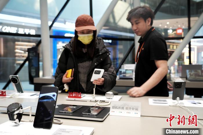 3月5日,消費(fèi)者在北京一門店選購(gòu)手機(jī)產(chǎn)品。中新社記者 張祥毅 攝