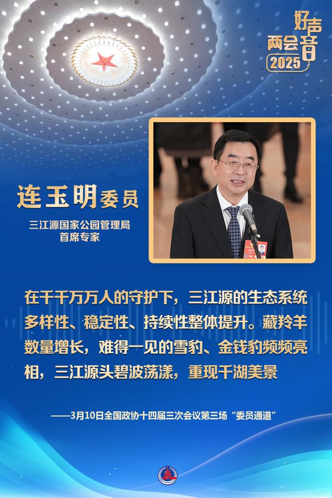 第一位回答記者提問的三江源國家公園管理局首席專家連玉明委員,是一名援青干部。他告訴大家,在三江源國家公園,有21432名生態(tài)管護(hù)員。在千千萬萬人的守護(hù)下,三江源的生態(tài)系統(tǒng)多樣性、穩(wěn)定性、持續(xù)性整體提升。藏羚羊數(shù)量增長,難得一見的雪豹、金錢豹頻頻亮相,三江源頭碧波蕩漾,重現(xiàn)千湖美景。
