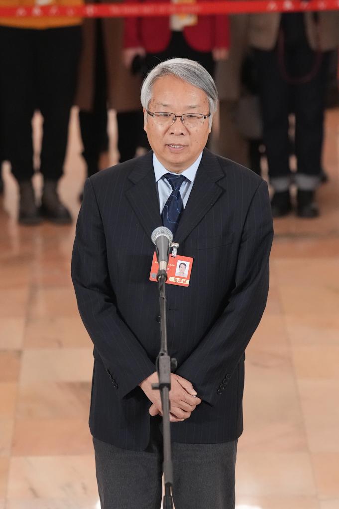3月10日,全國政協(xié)十四屆三次會(huì)議第三場“委員通道”集體采訪活動(dòng)在北京人民大會(huì)堂舉行。這是全國政協(xié)委員何潤生接受媒體采訪。新華社記者 金良快 攝