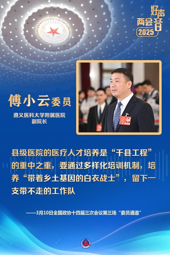 “國家持續(xù)實(shí)施‘千縣工程’,開展醫(yī)療人才‘組團(tuán)式’支援幫扶,支援西藏、新疆、青海等地區(qū)醫(yī)院和國家鄉(xiāng)村振興重點(diǎn)幫扶縣人民醫(yī)院?!弊窳x醫(yī)科大學(xué)附屬醫(yī)院副院長傅小云委員說。