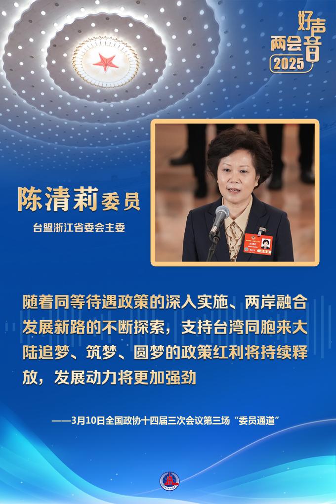 臺(tái)盟浙江省委會(huì)主委陳清莉委員分享了臺(tái)灣同胞在浙江生活、創(chuàng)業(yè)的故事。她表示,隨著同等待遇政策的深入實(shí)施、兩岸融合發(fā)展新路的不斷探索,支持臺(tái)灣同胞來大陸追夢、筑夢、圓夢的政策紅利將持續(xù)釋放,發(fā)展動(dòng)力將更加強(qiáng)勁。