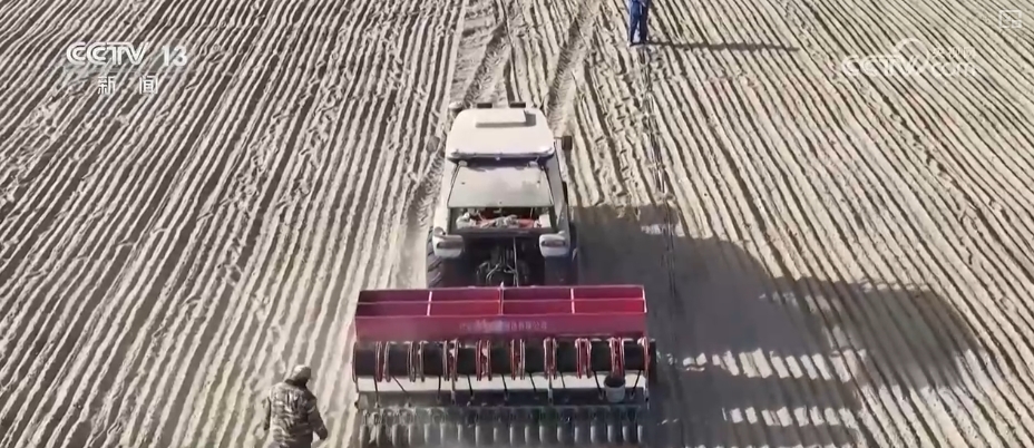 近日,甘肅酒泉金塔縣的10萬畝小麥開始播種。當(dāng)?shù)負屪マr(nóng)時,推廣機械化手段,助力農(nóng)業(yè)生產(chǎn)。