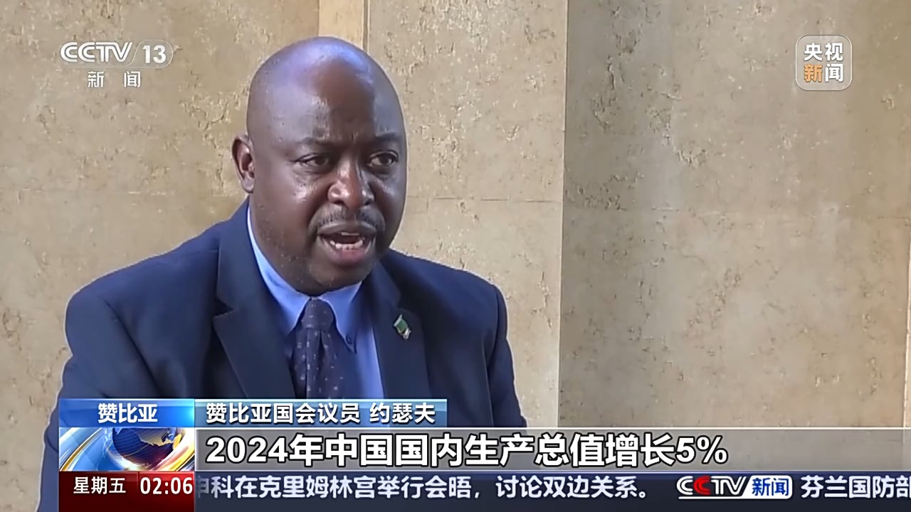 贊比亞國會議員 約瑟夫:2024年中國國內生產總值增長5%,這是一個較大的增長。我們希望在與中國的貿易往來中受益,中國是全球發(fā)展十分重要的參與者。