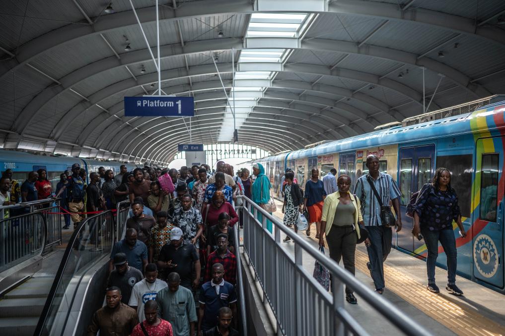 2024年12月2日,在尼日利亞拉各斯,乘客走在輕軌藍(lán)線的站臺上。拉各斯輕軌藍(lán)線是西非地區(qū)首條由中國企業(yè)自主設(shè)計(jì)、建造、施工、運(yùn)營的電氣化城市軌道交通項(xiàng)目。新華社記者 王冠森 攝