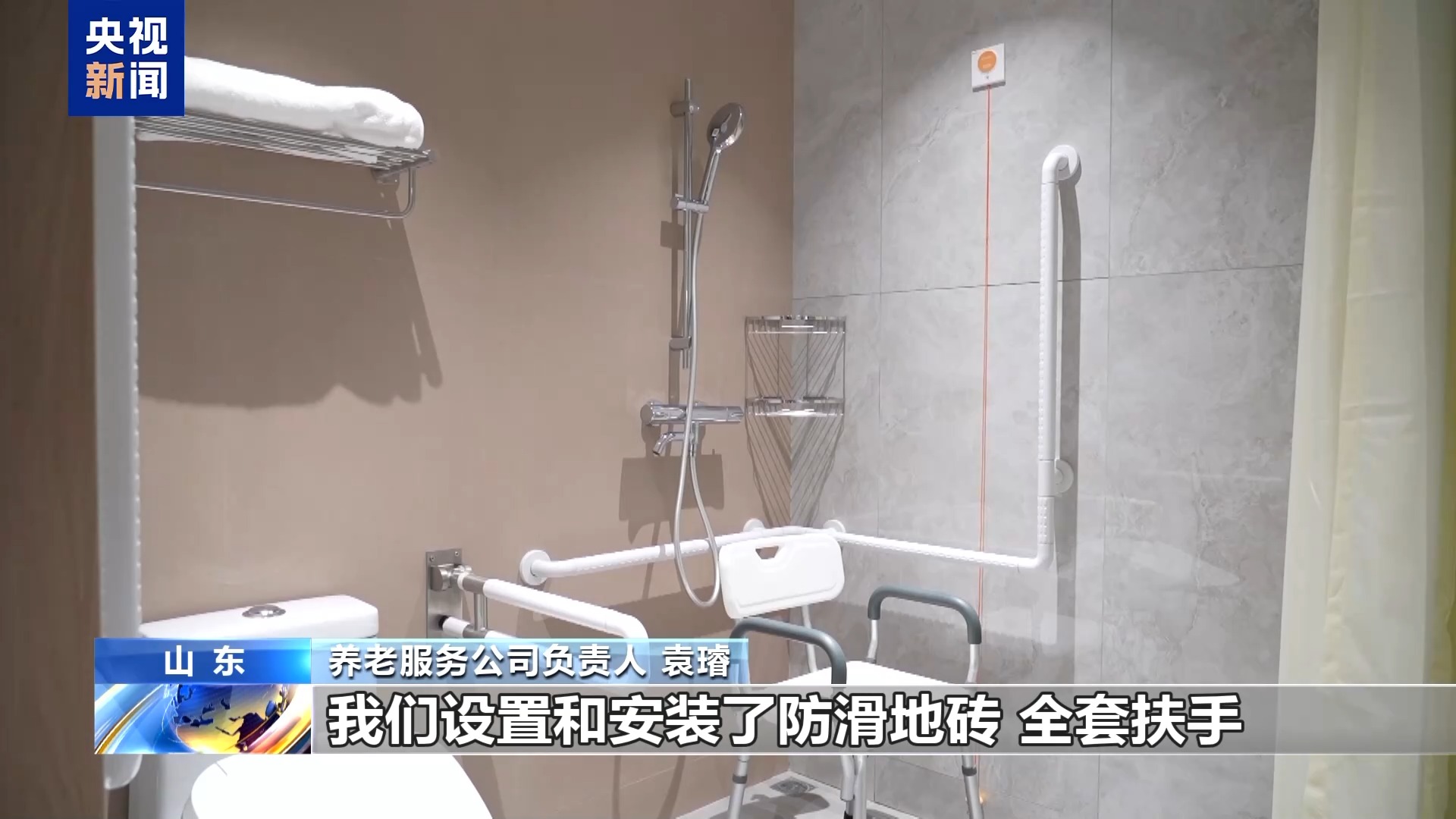 養(yǎng)老服務公司負責人 袁璿:在比較容易發(fā)生危險的衛(wèi)生間區(qū)域,我們設置和安裝了防滑地磚、全套扶手、按動式和拉繩式的緊急呼叫系統(tǒng),通過不斷豐富供給,提升我們的服務質量。
