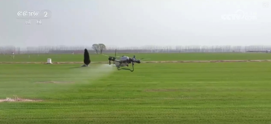 在另一處麥田里,植保無人機正在噴灑防治病蟲害的藥物。飛手們操縱控制器圈畫出相應范圍,植保無人機便能自動設(shè)計路線,精準高效完成噴灑任務,1天就能噴灑700多畝麥田。