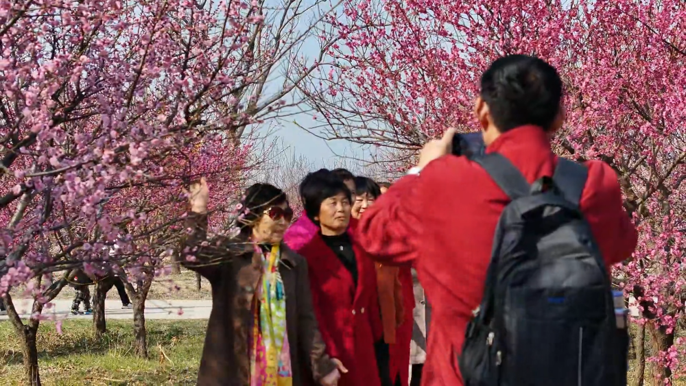 春日里,鄭州市惠濟(jì)區(qū)黃河灘地公園黃河梅園中的梅花次第開放,眾多賞花的游客紛紛前來(lái)打卡。(龐錦鵬 攝制)