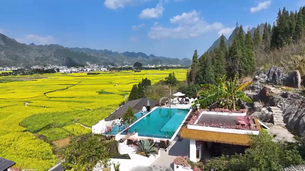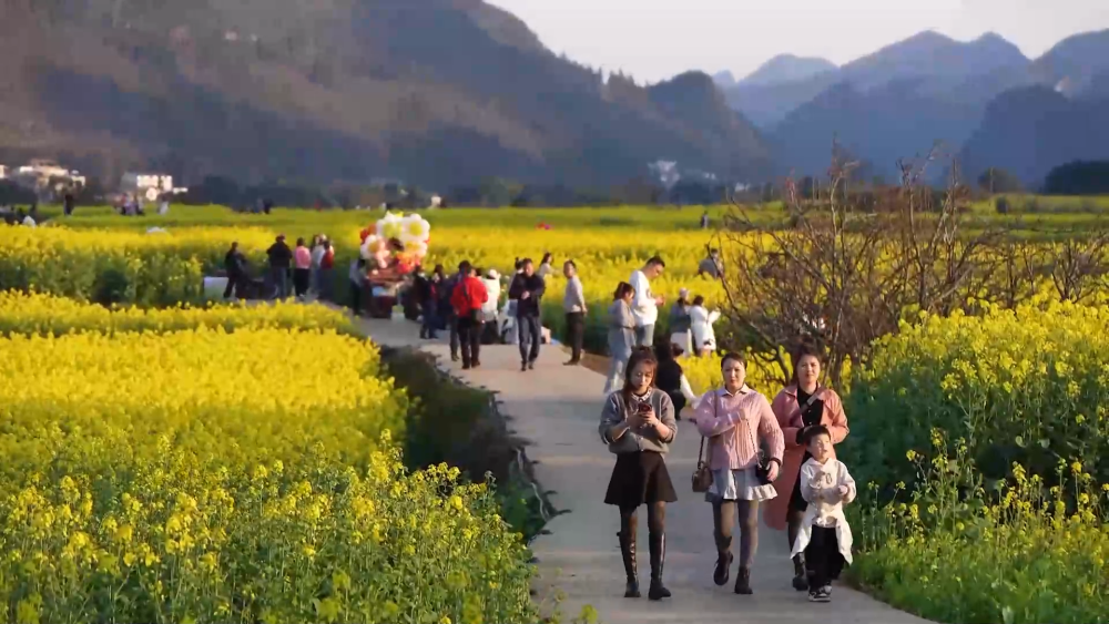 眼下,貴州省興義市萬(wàn)峰林景區(qū)內(nèi)的6000多畝油菜花競(jìng)相綻放,盛開的油菜花與峰林、田園、村莊、河流交相輝映,金色花海染盡鄉(xiāng)野,形成一幅美麗的山水田園畫,吸引了眾多省內(nèi)外游客前來(lái)觀賞打卡,欣賞春日美景。