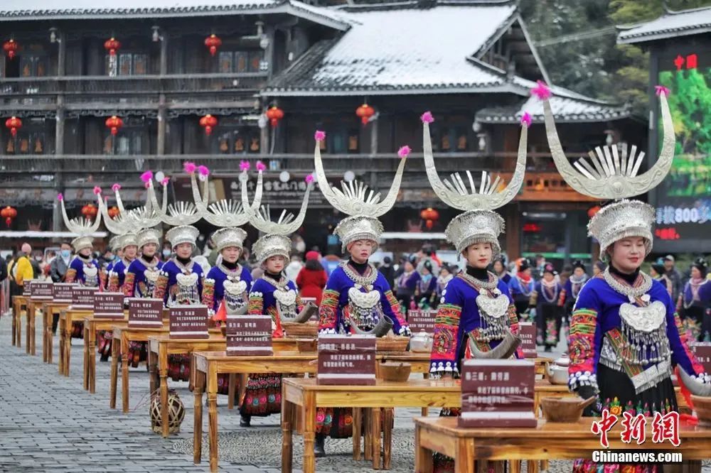 貴州西江苗寨十二道攔門(mén)酒。雷山縣融媒體中心供圖