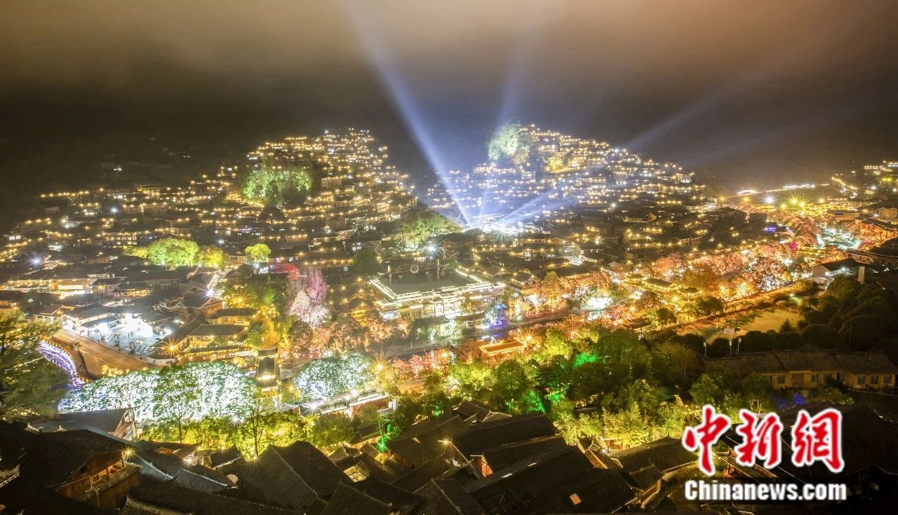 貴州西江千戶(hù)苗寨夜景。 唐哲 攝