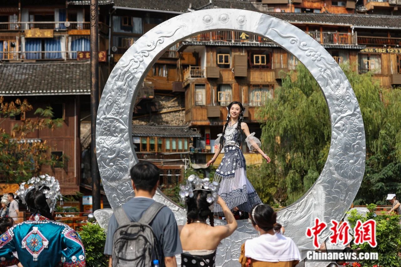 游客在貴州西江千戶(hù)苗寨游玩。 中新社記者 瞿宏倫 攝