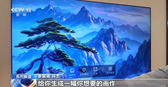 參展商 孫杰:只要說(shuō)出你想要的畫面內(nèi)容,它就會(huì)很短的時(shí)間給你生出一幅你想要的畫作。既可以作為自己的畫作在電視上欣賞,也可以通過(guò)微信掃碼復(fù)制到電腦手機(jī)上作為桌面。