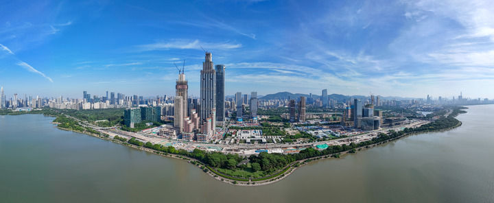 這是建設(shè)中的深圳灣超級總部基地(2024年10月3日攝,無人機(jī)全景照片)。新華社記者 梁旭 攝