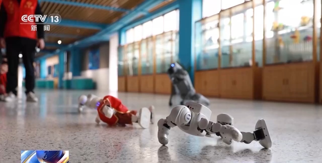 在首批全國中小學科學教育實驗校淮陰師范學院附屬小學,機器狗走進科學課的課堂,倒立行走、翻滾等特技表演,引得學生們陣陣歡呼。和機器狗賽跑、和機器人比拼俯臥撐,讓學生們興奮不已,也充滿好奇。
