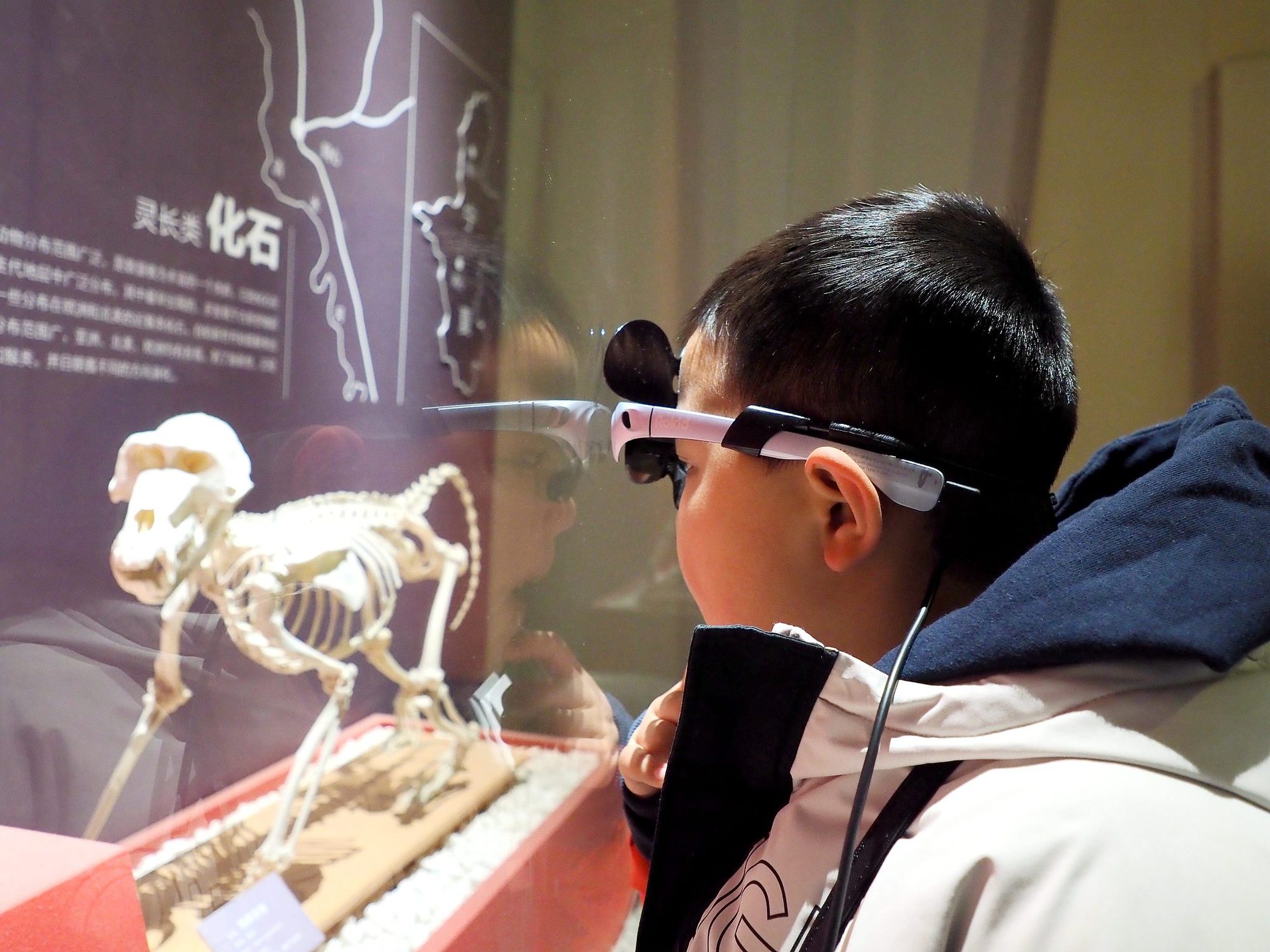 小朋友通過(guò)AR智能導(dǎo)覽眼鏡參觀展覽