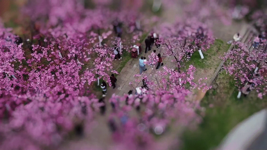 移軸鏡頭下,花間穿梭流連的游客與美麗的鮮花共同構(gòu)成一幅生動(dòng)的春日?qǐng)D景。